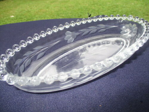 HUGHES CORNFLOWER & BUD CUTS IMPERIAL GLASS ELEGANT DEPRESSION OVAL RELISH BOWL