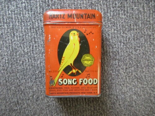 Vintage Hartz Mountain Song Food Tin Can Great Graphics!