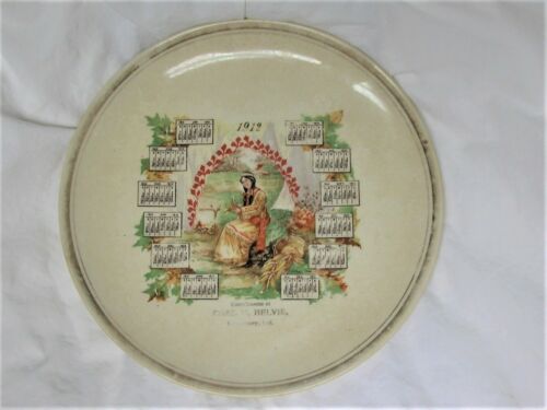 Leesburg IN Indiana Antique Advertising 1912 Calendar Plate Indian Maiden Teepee
