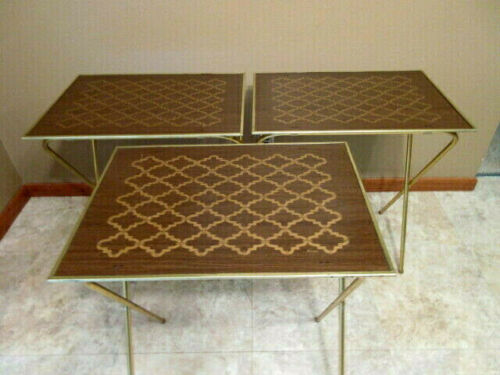 Vintage MC "LaVada" Brown/Gold Faux Wood TV Trays- Set of 3 - Nice!