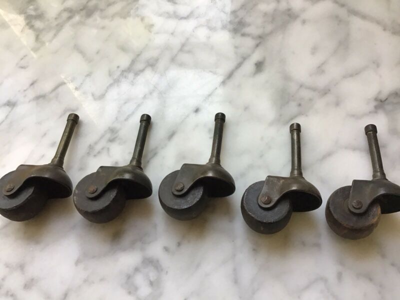 Title (ebay affiliate link): Set Of 5 Antique Wooden Wheel Furniture Casters, Nice!!