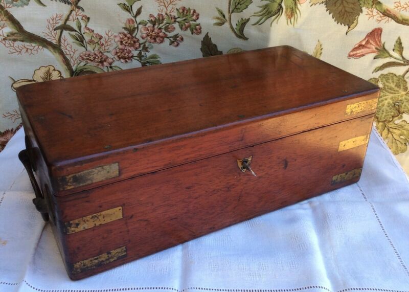 Title (ebay affiliate link): Antique Mahogany & Brass One Handled Deed Box With Key