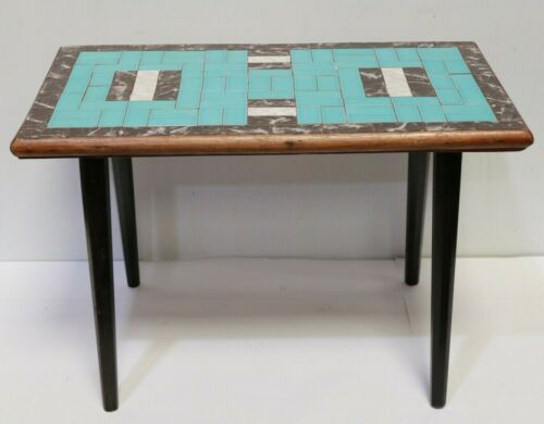 Title (ebay affiliate link): Vintage Mid Century BLUE WHITE MARBLE MOSAIC Tile Top Side Occasional Table -254