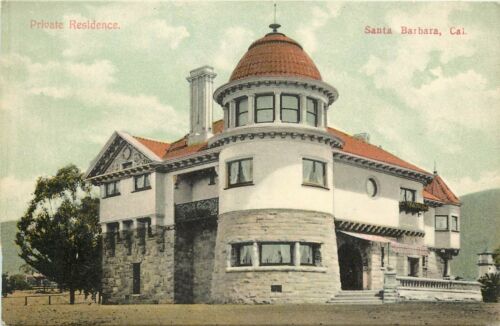 c1907 Chromograph Postcard Grand Private Residence Santa Barbara CA Round Tower