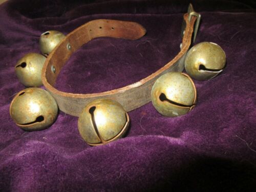 Title (ebay affiliate link): Antique Sleighbells 6 Bells on Leather Strap 1.5" x 1.5"