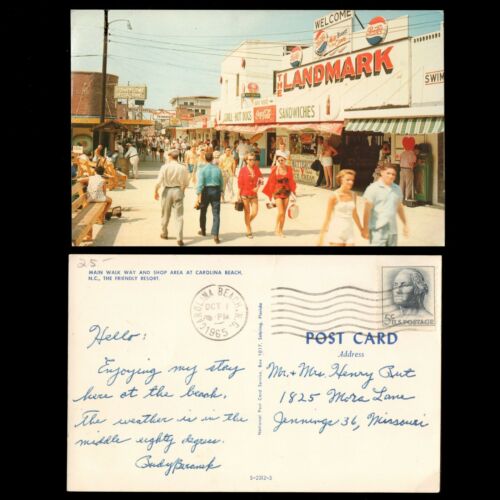 Title (ebay affiliate link): 1965 CAROLINA BEACH NC Postcard w/ Pepsi & Coca Cola Signs