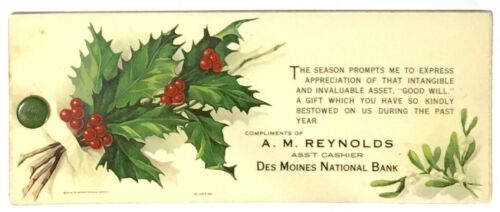 Title (ebay affiliate link): 1912 CHRISTMAS CELLULOID COVER BLOTTERS Des Moines Nat''l Bank Whitehead & Hoag