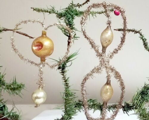 Title (ebay affiliate link): Two early 1900s Silver Tinsel German ornaments. with Gold. with Silver Beads.
