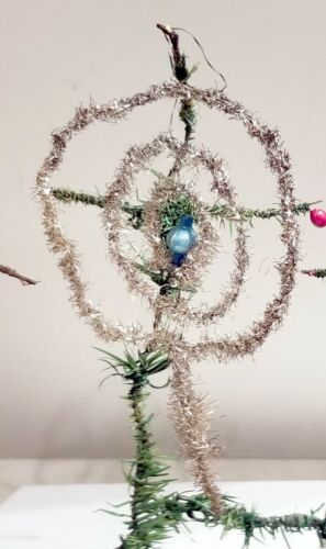 Title (ebay affiliate link): Blue Bead inside three different Silver Tinsel Circles. Early 1900s German Orn.