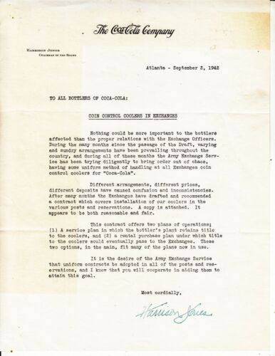 Title (ebay affiliate link): THE COCA-COLA COMPANY ATLANTA GA. LETTERHEAD DATED SEPT. 2, 1942 H. JONES