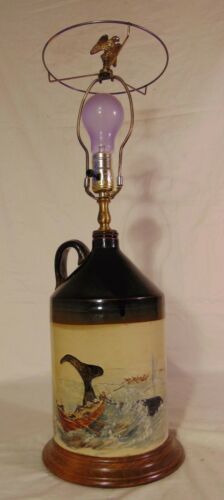Moby Dick Ahab Whale Folk Art Stoneware Jug Paint Enamel Lamp Fishermen