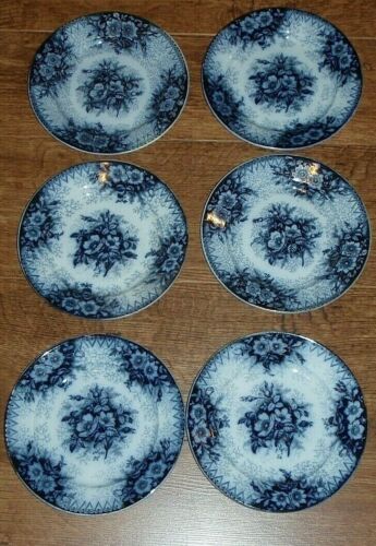 Lot of 6 Antique Eglantine K&G Luneville France Plate Blue 8"