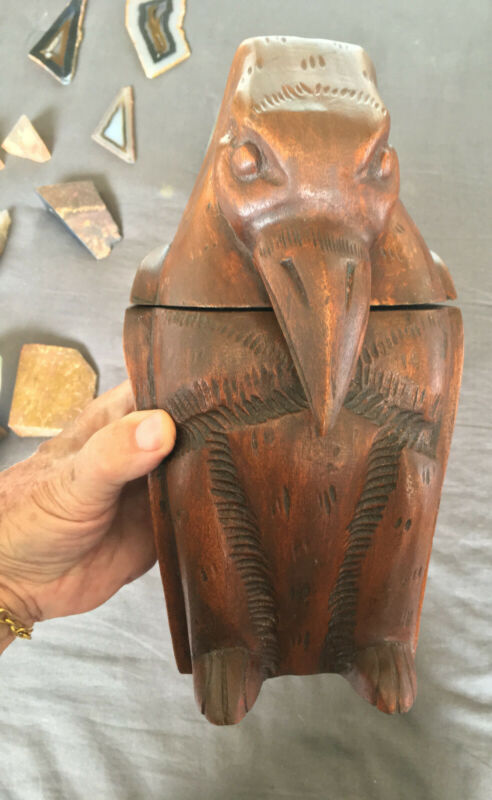 Title (ebay affiliate link): Vintage CARVED WOODEN BIRD / LIDDED / 10+ INCH / 3.5 LBS / Lovely Patina / +*+*+
