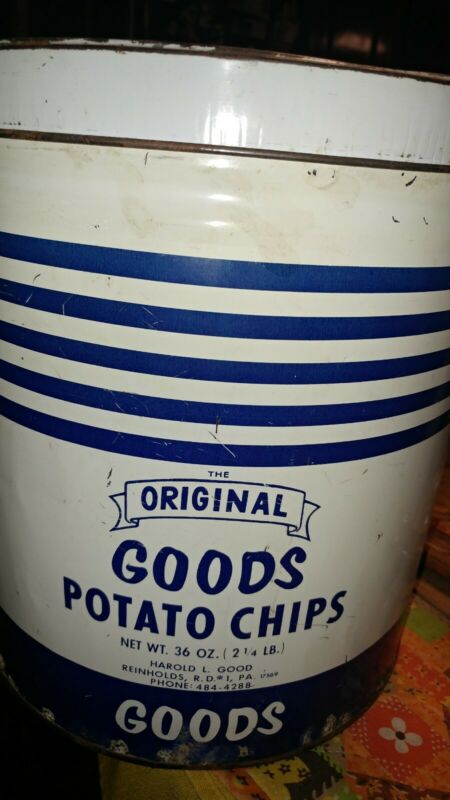 Title (ebay affiliate link): Vintage Potato Chip metal Can original Goods Harold Good Reinholds PA 9.5x11in