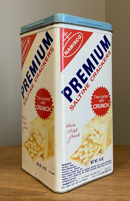 Title (ebay affiliate link): Vintage 1969 Nabisco Premium Saltine Crackers 14 oz. Tin with Lid - 9 1/2" High