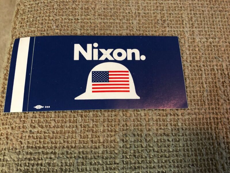 Title (ebay affiliate link): Richard Nixon hard hat campaign sticker 2 1/2 by 5 1/2 "