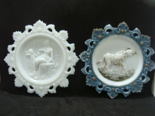 EAPG 2 Milk Glass Plates - Contrary Mule and Cupid and Psyche