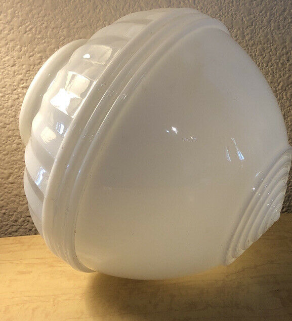Vintage Large Milk Glass Light Fixture Globe Acorn Shaped Ribbed Sections
