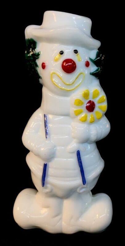 Title (ebay affiliate link): Boyd Art Glass Hand Painted Milk White Virgil The Clown #14 Made 3-24-95