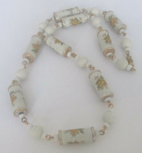 Vintage Milk Glass Yellow Rose Bead Necklace