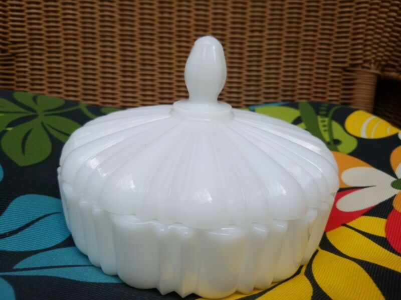 MILK GLASS DISH LID CANDY ANCHOR HOCKING ANTIQUE OLD CAFE WHITE BOWL DECOR
