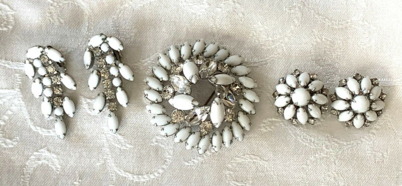Title (ebay affiliate link): Vintage Lot Milk Glass Rhinestone Brooch and Earrings - Kramer