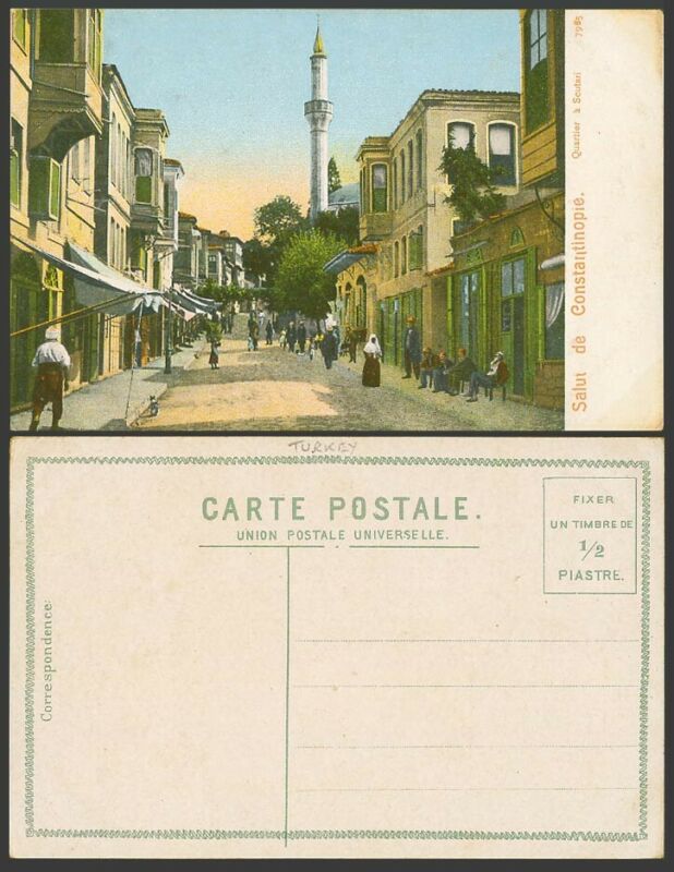 Title (ebay affiliate link): Turkey Salut de Constantinople Old Postcard Quartier a Scutari Street Scene 7985