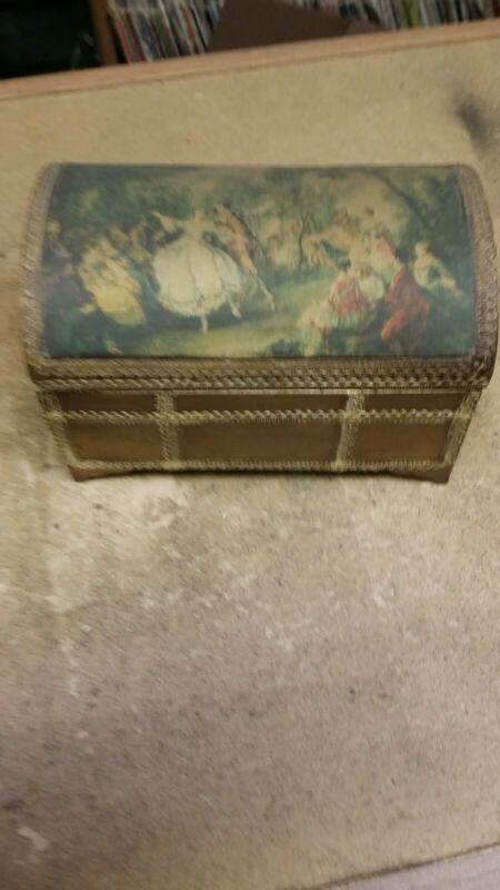 Title (ebay affiliate link): Gold gilt Wood Dancers in the Woods tapestry / Jewelry, Trinket, Music Box /USED