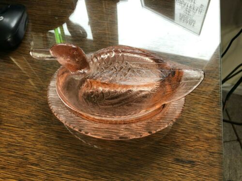 Title (ebay affiliate link): Vintage Pink or Peach Colored Depression Glass Duck Candy Dish With Lid