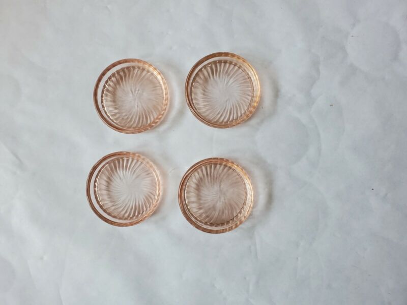 Pink Depression Glass 3.5-Inch Ribbed Ashtray/Sauce/Relish Dishes (set of 4)