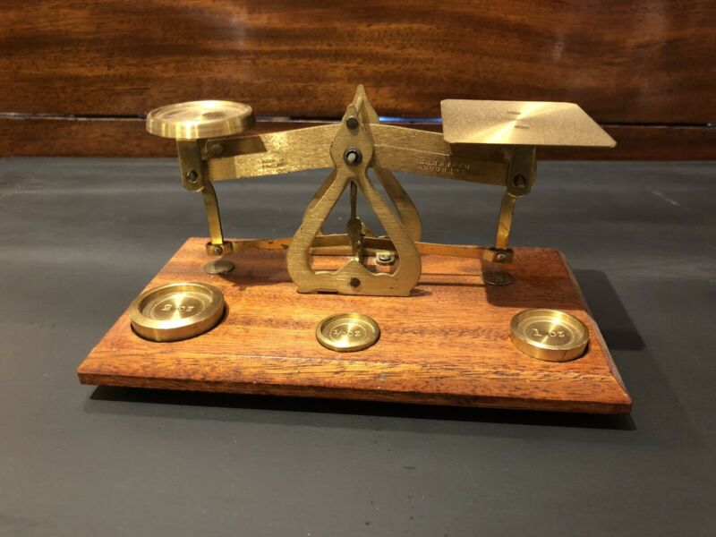 Title (ebay affiliate link): WOOD & BRASS ANTIQUE SCALE with WEIGHTS MADE in ENGLAND