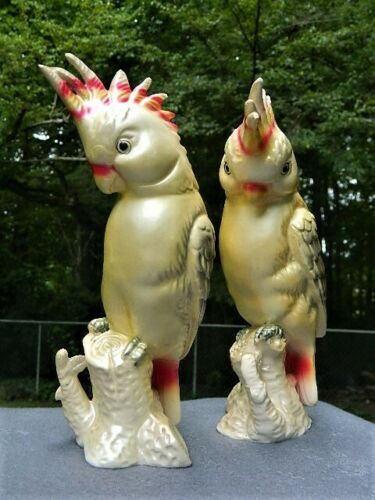 Title (ebay affiliate link): VINTAGE COCKATOO PARROT BIRD FIGURINE PAIR LUSTRE HAND PAINTED UNMARKED OLD