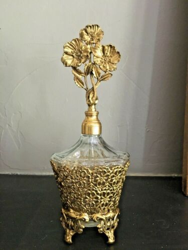 Title (ebay affiliate link): Vintage Globe Filigree Perfume Bottle 24 KT GOLD PLATED Ornate Floral 8.5" RARE