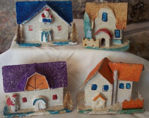 vintage mica cardboard 3d santa putz village houses ornaments japan