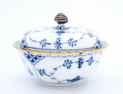 Title (ebay affiliate link): Unusual Sugarbowl #1101 - Blue Fluted Royal Copenhagen Full Lace - Gold - Crack