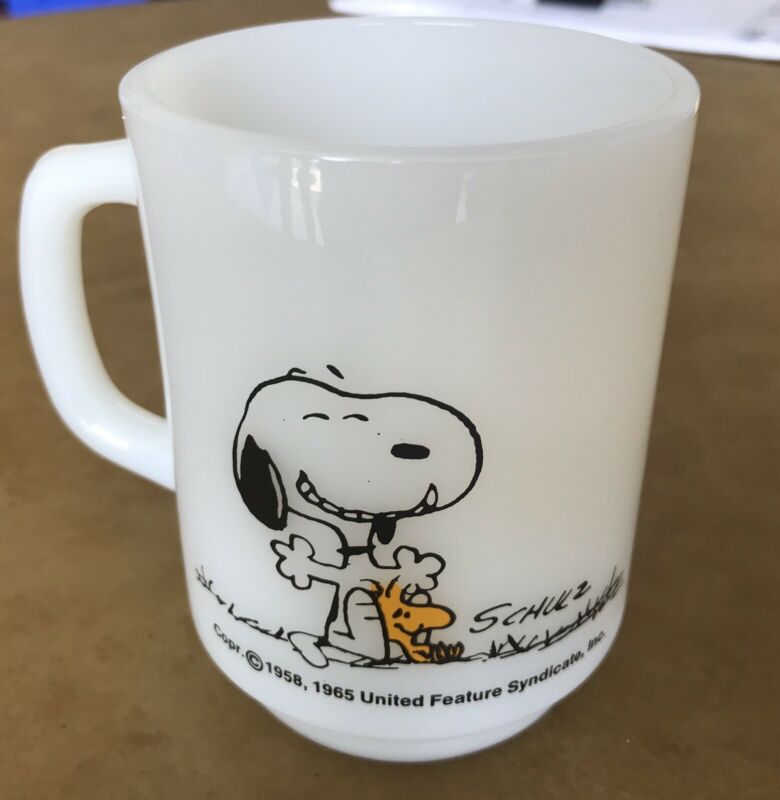 Title (ebay affiliate link): Vintage Anchor Hocking Milk Glass Snoopy Mug 1965 This Has Been A Good Day!