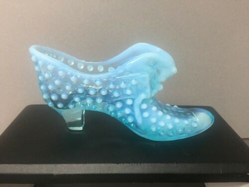 FENTON HOBNAIL BLUE MILK GLASS CAT HEAD SLIPPER SHOE WITH OUT LOGO