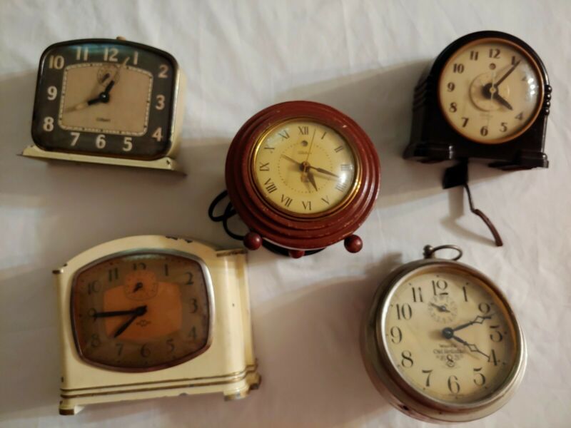 Title (ebay affiliate link): Lot of 5 Vintage & Antique Clocks For Parts Gilbert, Wards, Telechrons Some Work