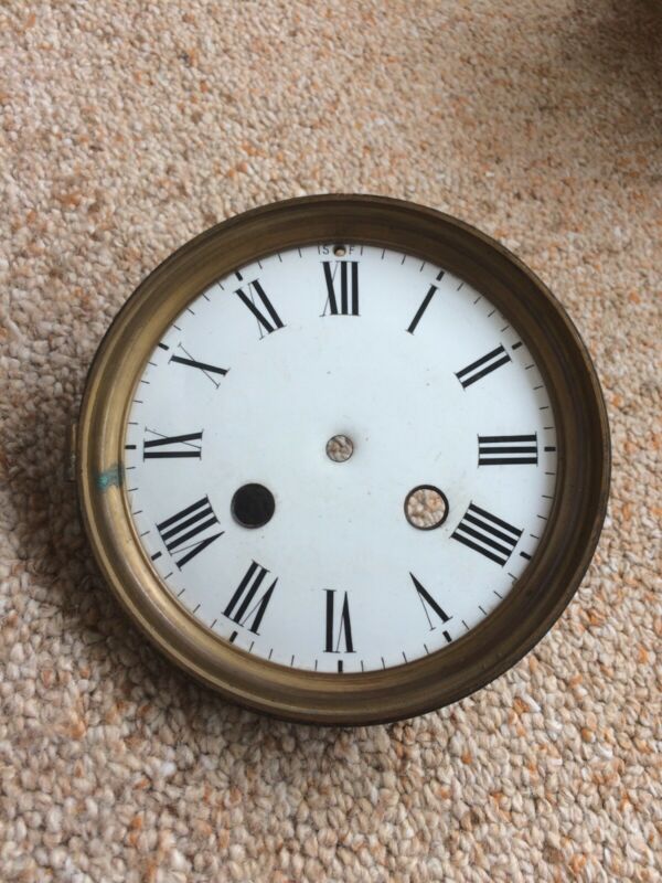 Antique French Clock Enamel Dial Brass Bezel Includdd