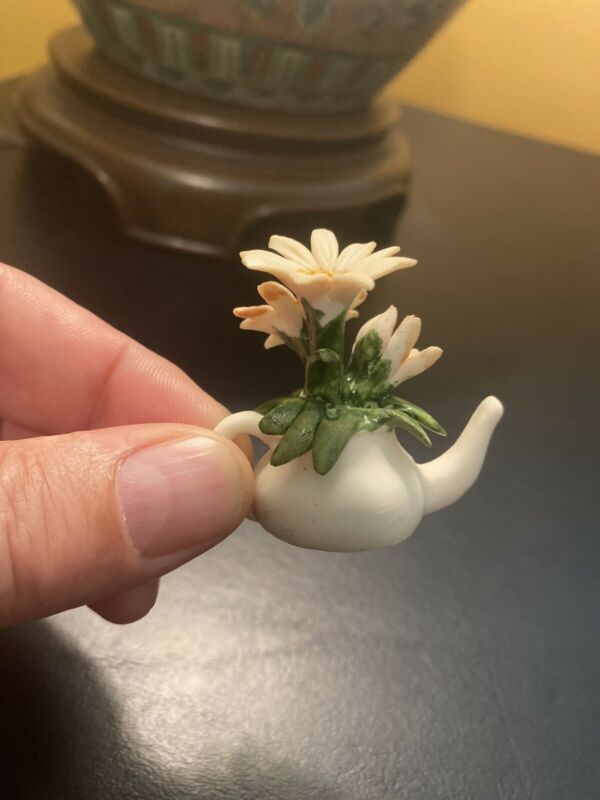 Title (ebay affiliate link): Capodimonte Italian Porcelain Yellow Miniature Floral Teapot figurine