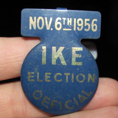 *** NOV. 6th 1956 IKE ELECTION OFFICIAL BADGE ***