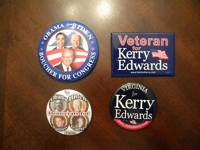 Title (ebay affiliate link): 4 Democrat Political Buttons Obama Biden Edwards Kerry