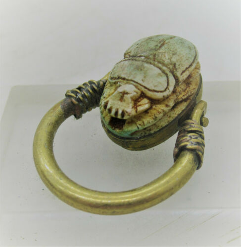 Title (ebay affiliate link): BEAUTIFUL ANCIENT EGYPTIAN FAIENCE SCARAB BEAD IN A GOLD GILT SWIVEL RING