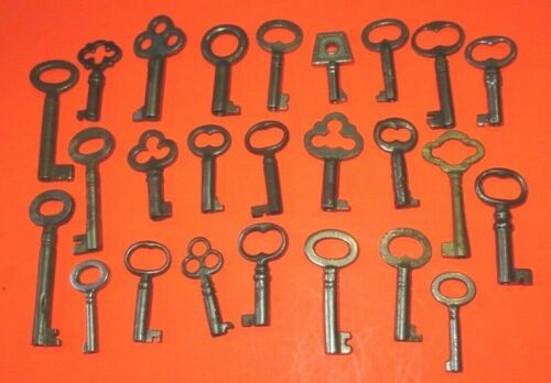 lot of 25 VINTAGE SMALL OPEN BARREL SKELETON KEYS JEWELRY MUSIC BOX PADLOCK KEY