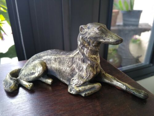 Title (ebay affiliate link): Vintage Art Deco Spelter Borzoi Russian Wolfhound Greyhound Dog Statue Figurine