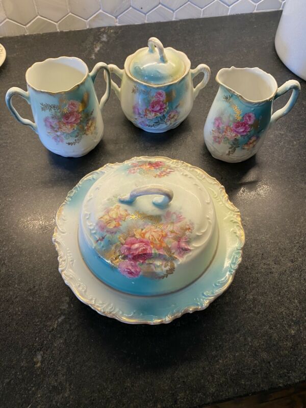 Title (ebay affiliate link): Antique Breakfast Serving Set - Pink Roses Cream And Sugar Vase Butter Dish