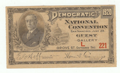 Title (ebay affiliate link): 1920 DEMOCRATIC NAT'L CONVENTION TICKET - JAMES COX