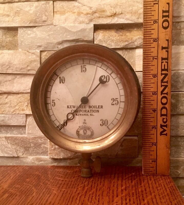 Title (ebay affiliate link): Vintage Kewanee Boiler Corporation Pressure Gauge 5" Steampunk Brass