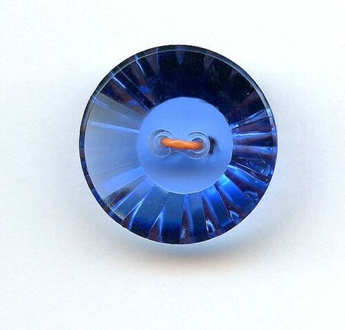 GORGEOUS CLEAR DEPRESSION GLASS BLUE button--SHAVE TOP--RADIATING DESIGN--7/8"