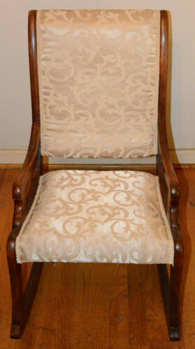 Title (ebay affiliate link): Vintage Wooden Rocking Chair Rocker White Upholstered Seat & Back NR